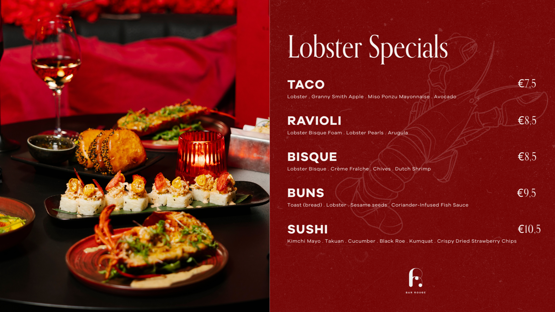 Enjoy a vibrant dinner with our Lobster Special on Thursday, November 27 and December 4. Treat yourself to a lobster-themed evening with dishes starting at €7.50.